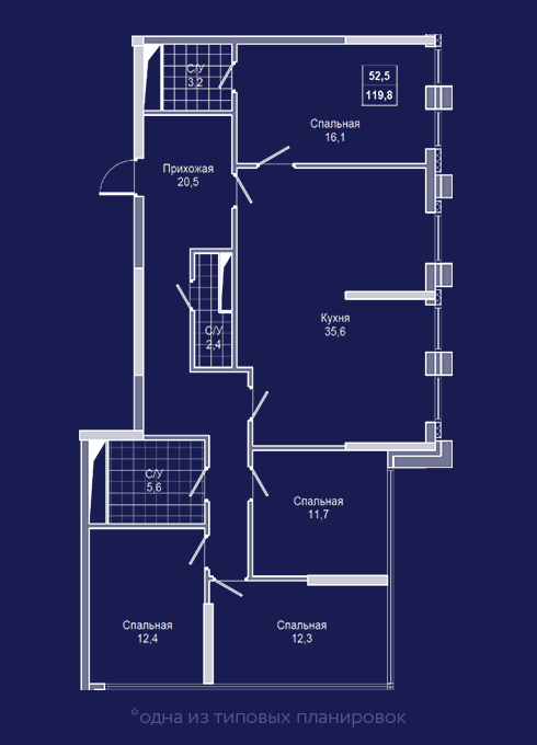 Разнообразный выбор планировок для любого жизненного сценария: от уютных однокомнатных квартир до пентхаусов. Выбирайте из 50-ти вариантов эргономичных планировок. Максимальная площадь квартир более 100 кв.м.(возможно объединение)